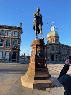 Later, curiosity lured us out again, down quiet side streets and into the heart of a business district. Fortune favored our wandering feet, and soon we found ourselves face to face with a statue of Robert Burns—the immortal Scottish poet whose verses had kindled imaginations for generations. It felt like a sign, a personal welcome from the spirit of Scotland itself.